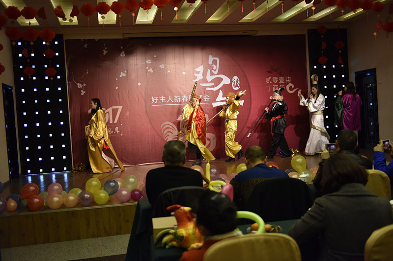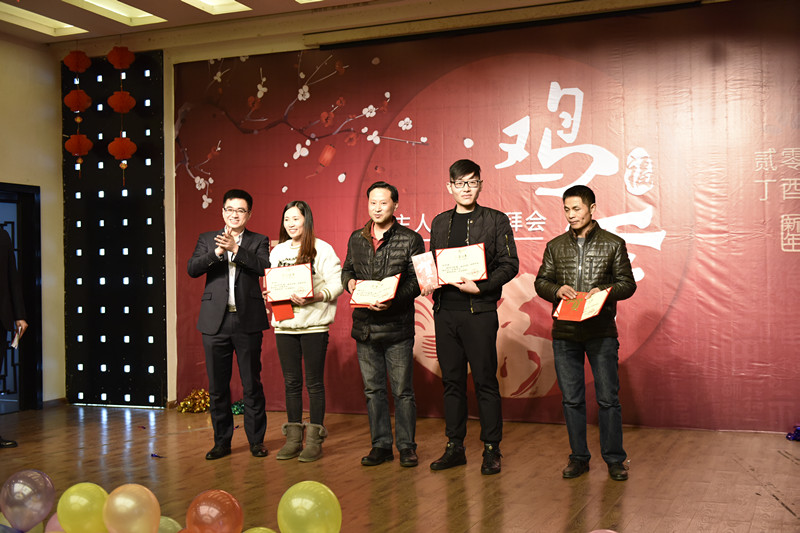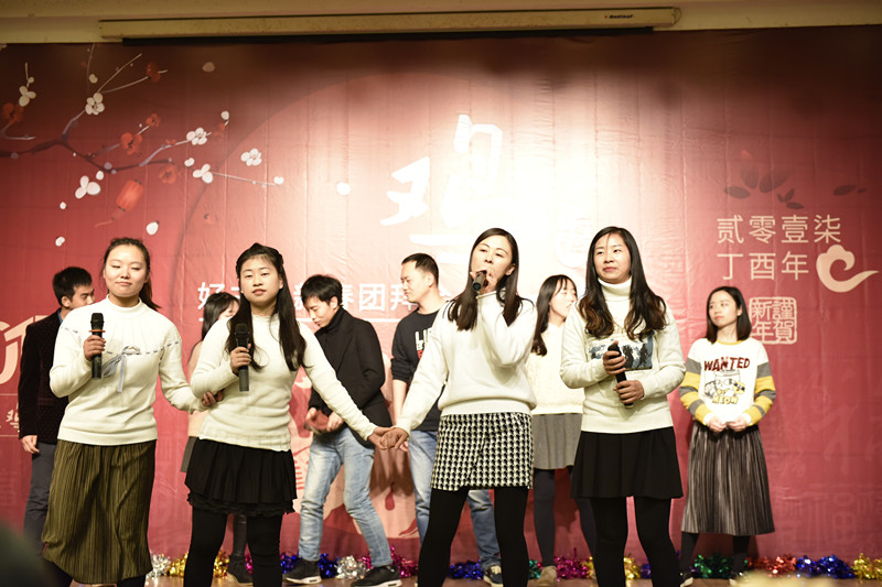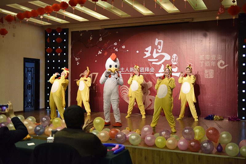 本次年會(huì)上,員工們自創(chuàng)自演了很多豐富多彩的節(jié)目,舞蹈、歌曲、脫口秀、口琴獨(dú)奏、小品、串燒等節(jié)目一應(yīng)俱全,充分展現(xiàn)了員工們才華橫溢的一面。一首歌曲串燒加獨(dú)舞將晚會(huì)推向了第一次高潮,員工們紛紛舉起手機(jī)拍照,臺(tái)下掌聲不斷;可愛的卡通小雞踏著輕快的步伐、跳著歡快的舞蹈,在臺(tái)上給大家分發(fā)玩偶小雞,給大家送上雞年最好的祝福;節(jié)目過程中穿插的互動(dòng)游戲、抽獎(jiǎng)活動(dòng)更是熱鬧非凡,將氣氛再次推向高潮;營(yíng)銷部的女神們也秒變女神經(jīng),反串西游記,在如來的帶領(lǐng)下,師徒五人紛紛取經(jīng)完成改行買狗糧的節(jié)目,也引起臺(tái)下一片歡聲笑語;兩個(gè)大合唱節(jié)目《真心英雄》、《最初的夢(mèng)想》唱出了員工們的心聲,跟隨著歌聲,舞動(dòng)著手中的熒光棒,堅(jiān)持自己的夢(mèng)想,做好主人的英雄,傳達(dá)了員工們應(yīng)堅(jiān)守初心、勇往直前的信念。