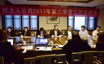10月13日,好主人2017年第三季度工作總結(jié)會議順利舉行,公司總經(jīng)理楊洪海及各部門負責人參會。會議圍繞第三季度部門工作總結(jié)、優(yōu)秀干部及員工表彰展開。