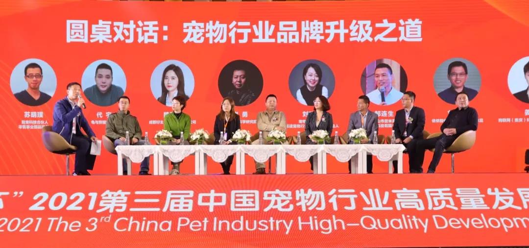 圓桌對話環(huán)節(jié),寵物行業(yè)白皮書、派讀寵物行業(yè)大數(shù)據(jù)平臺創(chuàng)始人劉曉霞,西部寵物生命科學(xué)研究院院長肖勇,佛山市雷米高動物營養(yǎng)保健科技有限公司執(zhí)行董事鄒連生,成都好主人寵物食品有限公司市場總監(jiān)魏導(dǎo)一,龜與熊貓董事長代宇,依依股份寵物護(hù)理事業(yè)部總監(jiān)劉雙迎,易寵科技合伙人、零售事業(yè)部副總裁蘇明璞,狗聯(lián)網(wǎng)(重慶)科技有限公司副總經(jīng)理姜帆就“寵物行業(yè)品牌升級之道”話題展開智慧碰撞。