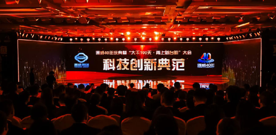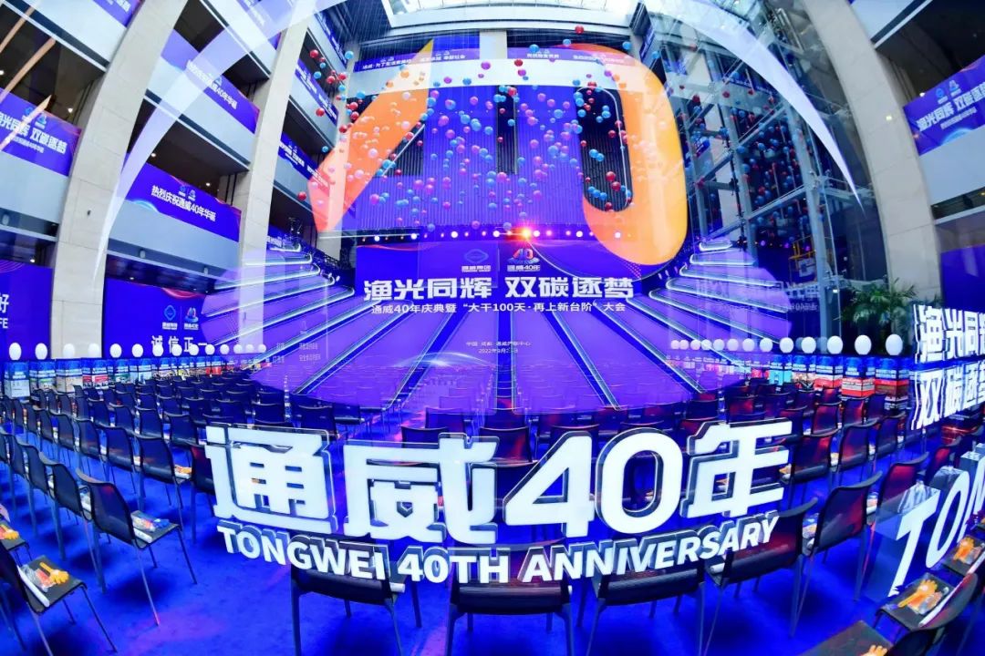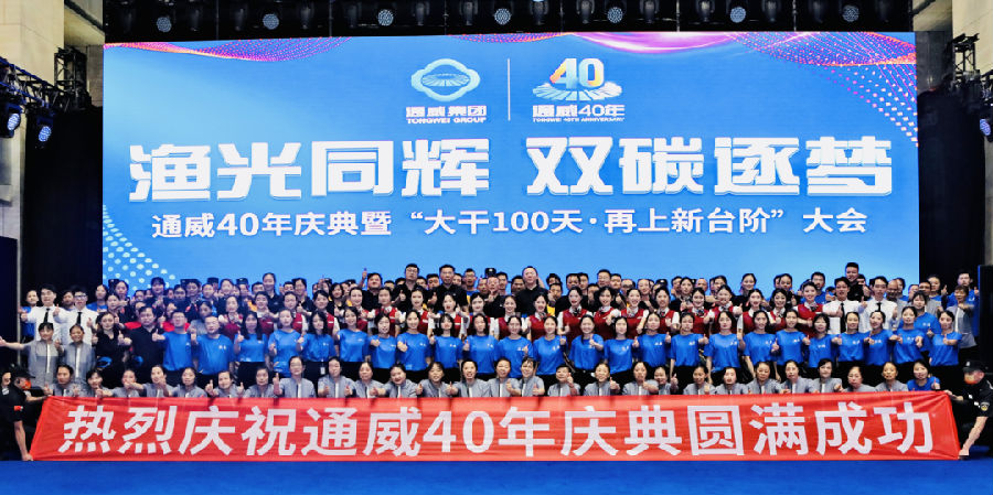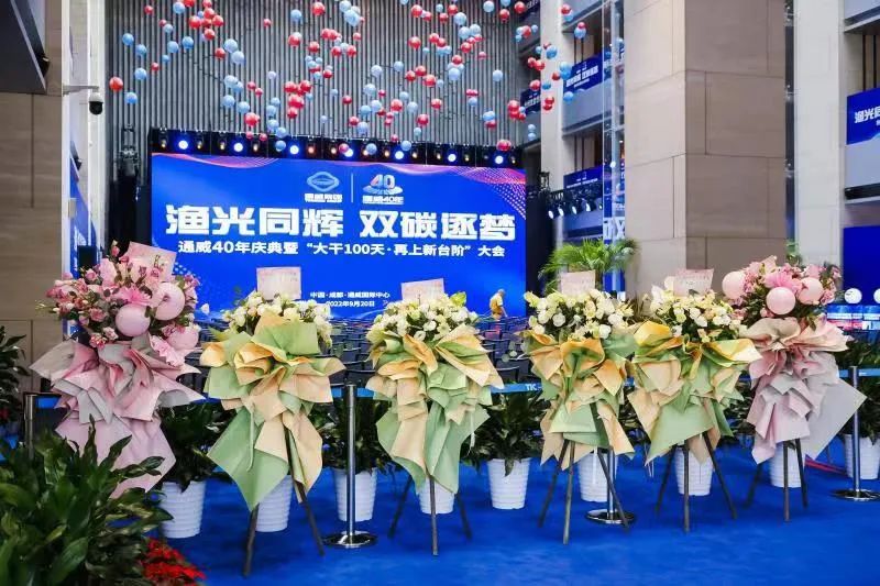 近日,“漁光同輝 雙碳逐夢”通威40年慶典暨“大干100天·再上新臺階”大會在通威國際中心隆重舉行。在嚴格遵守疫情防控規(guī)定的情況下,大會通過線上線下結(jié)合的方式,海內(nèi)外5萬通威人相聚“云端”,共慶通威40年華誕。中央電視臺著名主持人周濤、劉棟棟主持大會。韓磊、呂薇、徐濤、降央卓瑪、李丹陽、騰格爾、戴玉強等著名歌唱家、藝術(shù)家傾情演出,激情唱響通威40年。櫛風(fēng)沐雨四十載,春華秋實滿庭芳。5萬通威人帶著累累碩果邁上新征程,一路征程一路歌,向著更高質(zhì)量、更高水平發(fā)展奮進,踏出高質(zhì)量發(fā)展的鏗鏘足音。