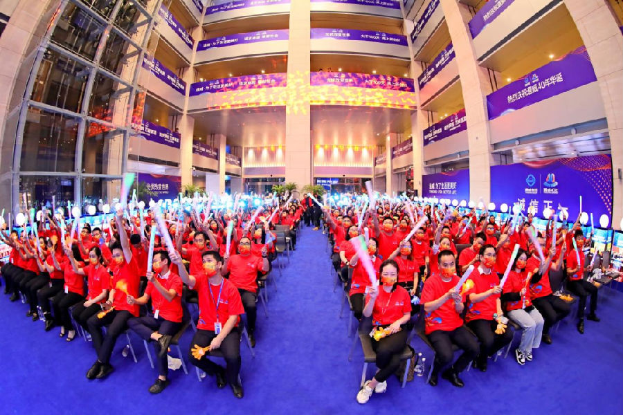 當(dāng)晚共同度過這個難忘夜晚的,還有全國各地及海外地區(qū)300余家分、子公司的5萬通威人,因為疫情原因,他們通過實時直播,相聚“云端”,共慶生日!