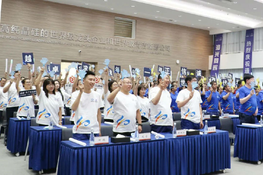 劉漢元主席表示,回首40年,通威深耕農(nóng)牧,成為全球最大的水產(chǎn)飼料生產(chǎn)企業(yè)。堅定發(fā)展光伏產(chǎn)業(yè),通威旗下永祥股份年產(chǎn)能從最初的200噸發(fā)展到現(xiàn)在的23萬噸,并通過自己的努力,把能耗降低到了十年前的五分之一,把產(chǎn)品的成本降到了全世界最低,在國外長期牢牢掌握多晶硅相關(guān)技術(shù)、工藝專利的背景下,助力中國多晶硅后來居上。4年前,全球多晶硅產(chǎn)量,中國占比超過50%,去年、今年超過70%,未來3到5年,85%-90%以上的高純晶硅將由中國資本、中國技術(shù)、中國產(chǎn)業(yè)制造,永祥在其中始終堅定地扮演第一參與者的角色。目前,永祥生產(chǎn)的每一爐、每一噸高純晶硅,99.5%以上滿足單晶需求,90%符合國家電子級標(biāo)準(zhǔn)?!笆奈濉薄笆逦濉逼陂g,我國普通集成電路、芯片的生產(chǎn),無論需要一千噸、五千噸還是一萬噸,通威永祥人都有能力為我國芯片產(chǎn)業(yè)提供有效的核心優(yōu)勢產(chǎn)品支撐。與此同時,不到十年時間,通威太陽能從產(chǎn)能規(guī)模、轉(zhuǎn)換效率、成本到建設(shè)速度一路領(lǐng)先、領(lǐng)跑,成為全球最具競爭力的太陽能電池企業(yè)。隨著明年相關(guān)項目的投產(chǎn),通威太陽能電池累計產(chǎn)能規(guī)模將達到近100GW,也就是一年生產(chǎn)1億千瓦的光伏電池,相當(dāng)于德國現(xiàn)在所有發(fā)電裝機容量的總和。目前人類每年排放300億噸二氧化碳,每年通威的電池產(chǎn)品形成的發(fā)電能力,每年可以減排3億噸二氧化碳,十年的產(chǎn)品和產(chǎn)量每年可以減少30億噸二氧化碳的排放,相當(dāng)于消除了全人類每年10%的二氧化碳的排放。