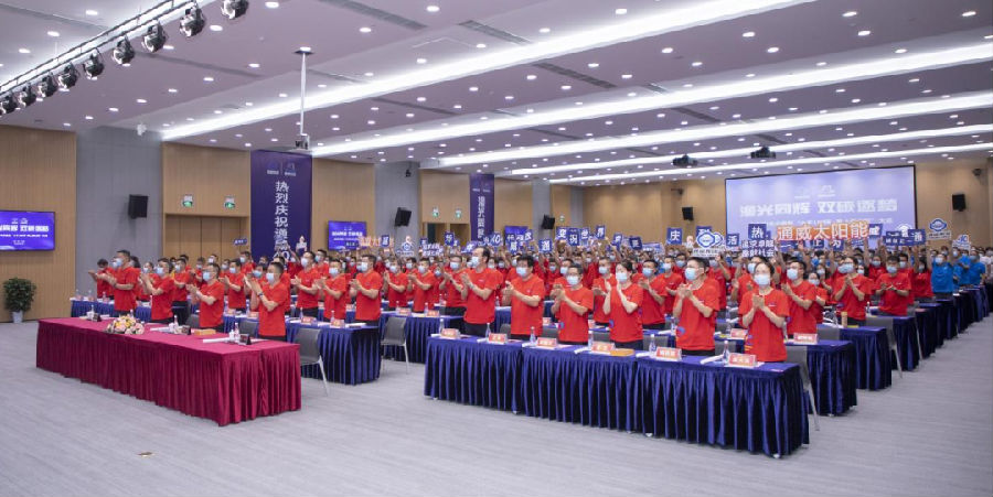伴著雄壯的《通威之歌》唱響,“漁光同輝 雙碳逐夢”通威40年慶典暨“大干100天·再上新臺階”大會圓滿落下帷幕。半年多來,從前期精心策劃和籌備,到系列預(yù)熱活動的持續(xù)開展,再到大會的順利舉行,大會籌備組數(shù)百名員工加班加點、攻堅克難,加班超過4萬小時。特別是面對疫情反復(fù)帶來的壓力,大家中秋假期和周末全體停休,爭分奪秒搶時間,千方百計抓進度,反復(fù)打磨優(yōu)化方案,關(guān)鍵籌備人員長達半個月駐扎辦公室,以堅決“拿下山頭”的決心和信念,全力以赴完成通威40年慶線上線下活動。通威40年慶系列活動的成功舉行,再次展現(xiàn)了通威人“事事爭創(chuàng)一流”的企業(yè)精神,更是對通威40年華誕的最好獻禮!