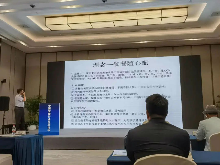 林教授也著重向參會(huì)代表介紹了Pjoy彼悅“餐餐隨心配”理念的優(yōu)勢(shì)所在。作為寵物食品行業(yè)新的創(chuàng)新概念,“餐餐隨心配”讓寵物主可以根據(jù)貓咪的口味偏好或自己的想法,每一餐都能隨心為犬貓搭配任意工藝(烘干糧、風(fēng)干糧、濕糧)、口味(雞、鴨、魚、牛肉)的豐富美味飲食,同時(shí)再搭配專門研發(fā)的各種口味的凍干輔食,為寵物帶來(lái)了營(yíng)養(yǎng)、口味、適口性上的多重享受,很好的補(bǔ)足、平衡了不同犬貓、不同階段的不同需求。