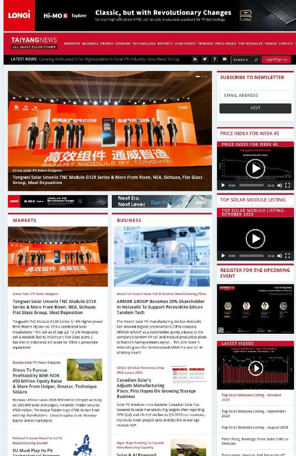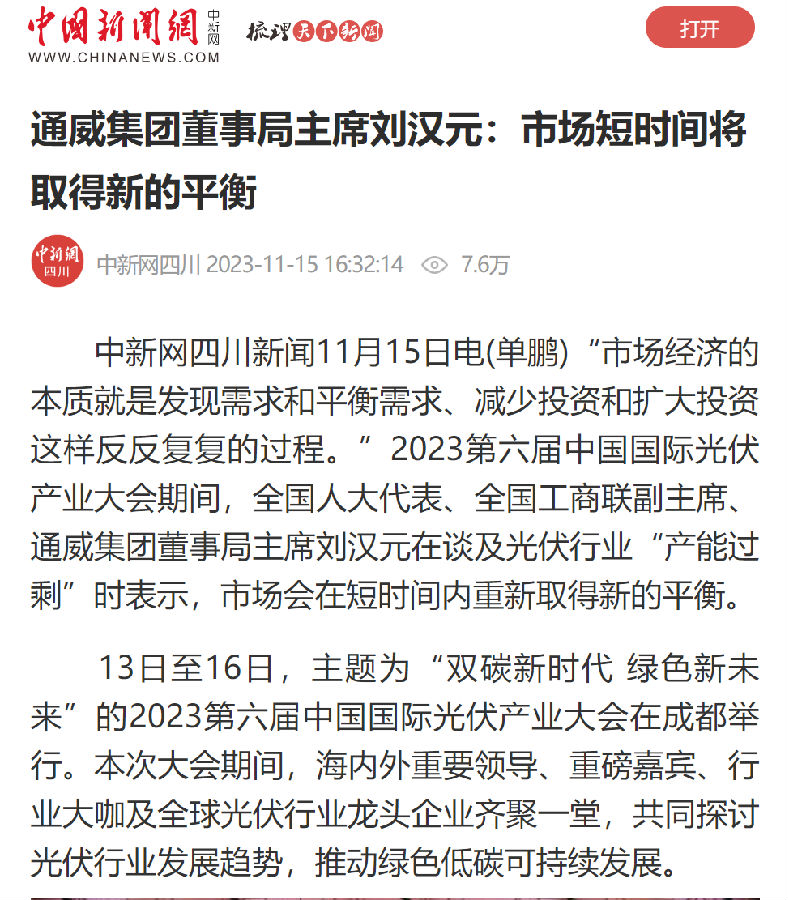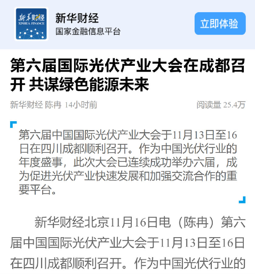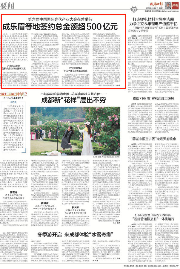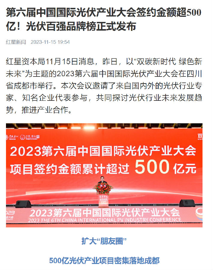 四川日報、四川電視臺、四川觀察、成都日報、紅星新聞、成都商報、封面新聞、華西都市報等主流媒體;21世紀(jì)經(jīng)濟報道、新京報、界面新聞、財聯(lián)社、財經(jīng)網(wǎng)、英才雜志、期貨日報等財經(jīng)證券媒體;中國經(jīng)營報、證券市場周刊、時代傳媒、長江商報、經(jīng)濟觀察報、每日經(jīng)濟新聞、華夏時報、金融界、InfoLink、中國經(jīng)濟網(wǎng)、雪球、國際能源網(wǎng)、索比光伏網(wǎng)、北極星太陽能光伏網(wǎng)、全球光伏、能源一號、華夏能源網(wǎng)、世紀(jì)新能源網(wǎng)、ofweek太陽能光伏網(wǎng)、能源雜志、光伏們、黑鷹光伏、光伏資訊、solarzoom、光伏盒子、趕碳號科技、能源嚴(yán)究院、光伏見聞、新能薈、能源圈、草根光伏、能源思享匯、綠能新媒、光伏新觀察等媒體推出了多篇生動翔實、精彩紛呈的報道,從不同角度詮釋了本屆光伏產(chǎn)業(yè)大會對中國光伏發(fā)展的推動作用,對全球綠色未來的引領(lǐng)意義。