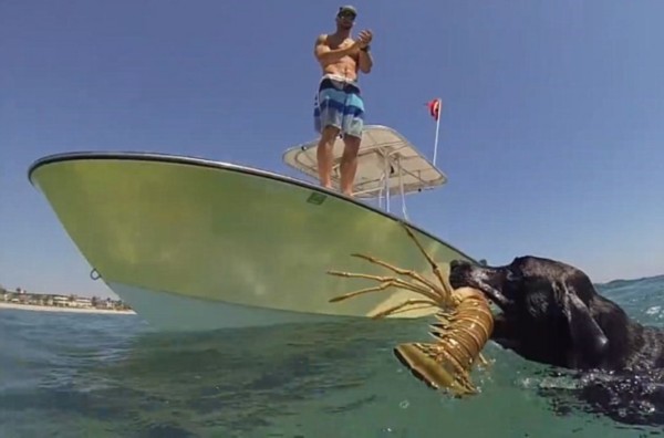 寵物狗海中捉龍蝦獻(xiàn)給主人